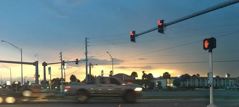 And you know what? I think he was right. I’m not sure what making orange juice looks like, exactly, but I think it was kind of that. Yellow-orange patches of sky were flanked by puffs of low-hanging dark clouds. The black silhouettes of palm trees loomed against the fading sky. Opaque sheets of rain were visible in the distance with swirly gray clouds layered on top. In other words, making orange juice.